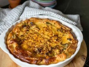 TIP: deze hartige taart kan je prima een dag van te voren bereiden. (wel geheel afbakken en dan de volgende dag even opnieuw opwarmen)